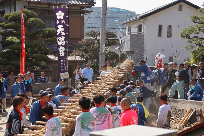 4月には川名津柱松神事(祭り)(外部リンク)が行われ、町は祭り一色となり、全国から見物客が訪れるほどです。何もない場所に柱松を立てる時のハラハラドキドキ感と倒すときのスレスレ感は見所です。